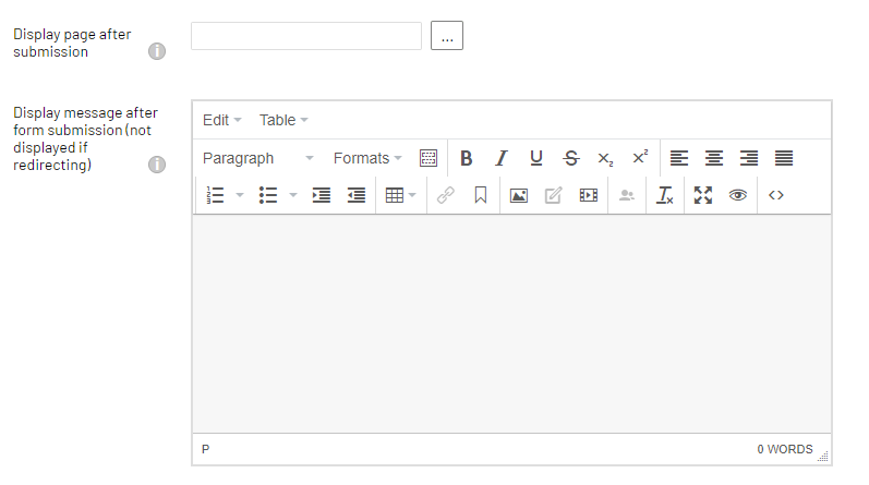 Display page after submission: Select a page (internal link), that you want to display after the form is submitted.